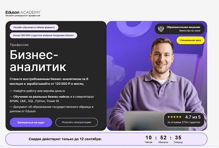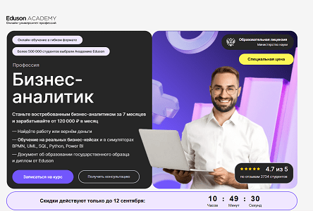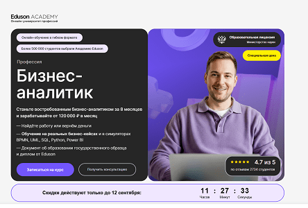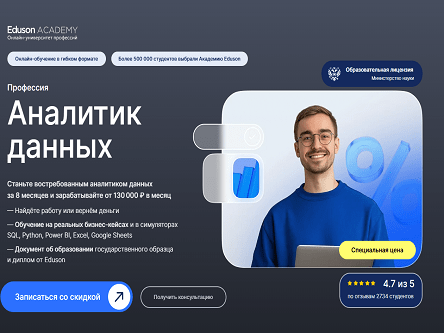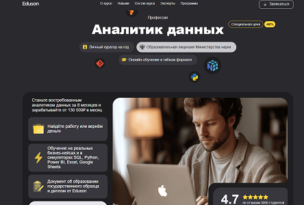 Академия Eduson — это ведущий сервис онлайн-обучения, который готовит специалистов в современных профессиях и помогает освоить востребованные на рынке труда навыки.
