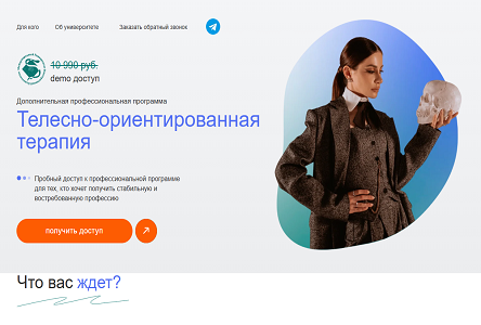 - Флагманский продукт "Интегративный телесно-ориентированный терапевт": обучение профессии телесного психолога с дипломом международного образца.