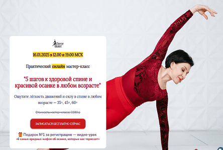 Программа "Моя новая осанка" — это уникальная методика, которая всего за 20 минут в день помогает женщинам в любом возрасте и с любым уровнем подготовки избавиться от боли в спине и шее, выровнять осанку, подтянуть фигуру и вернуть телу молодость и легкость.