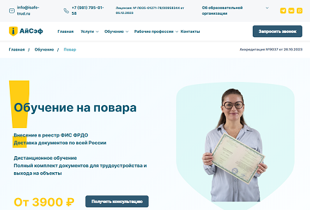 Институт профессионального образования "АйСэф" — современная образовательная организация, работающая по всей России в дистанционном формате. Готовит квалифицированных специалистов с выдачей полного пакета документов установленного образца и выгрузкой данных в федеральный реестр.