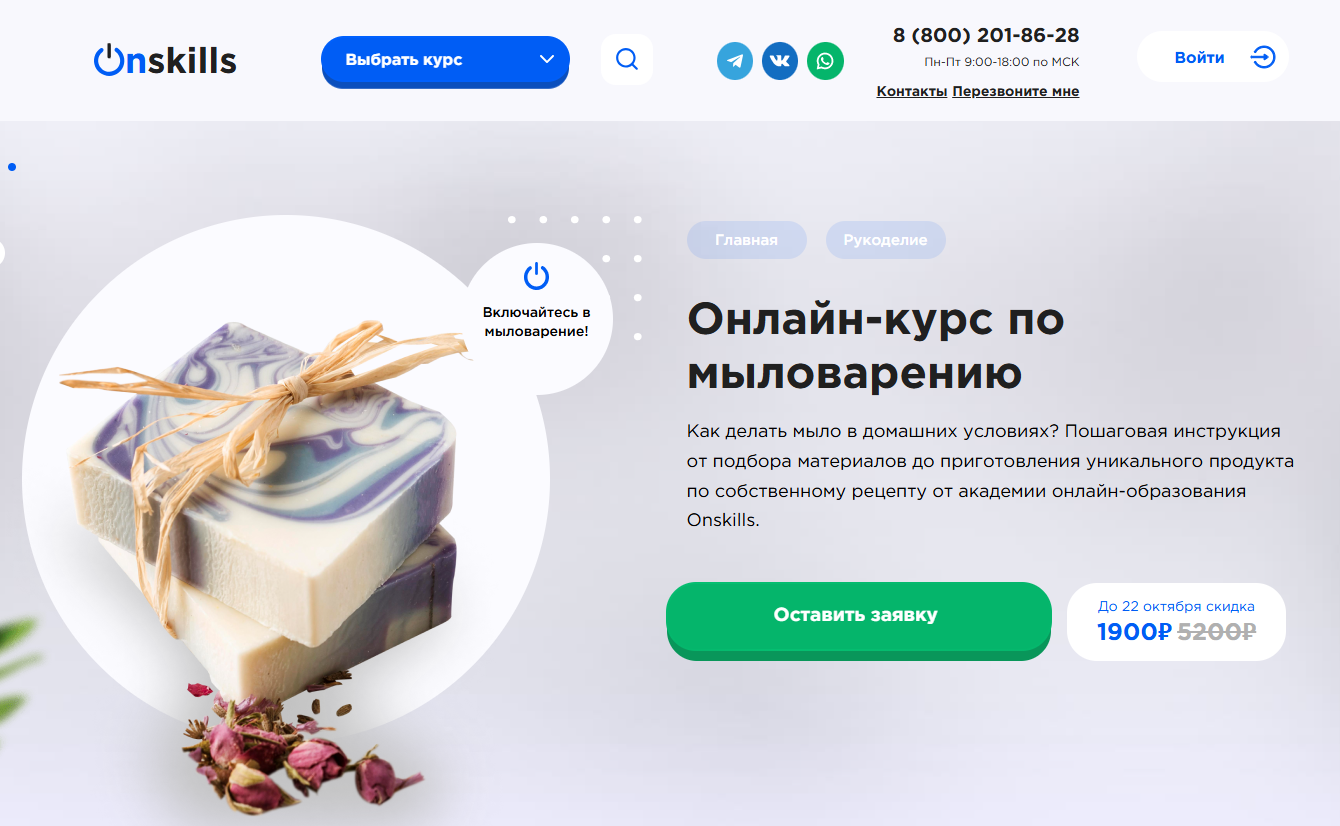 Onskills работает с 2019 года, предлагает более 100 онлайн-курсов самой разной направленности: IT, красота и уход за собой, дизайн, фотография, рукоделие, искусство, психология. Продолжает развиваться, постоянно записывает новые видеокурсы. Все курсы стоят одинаково, Onskills можно назвать fix price от мира онлайн-образования.