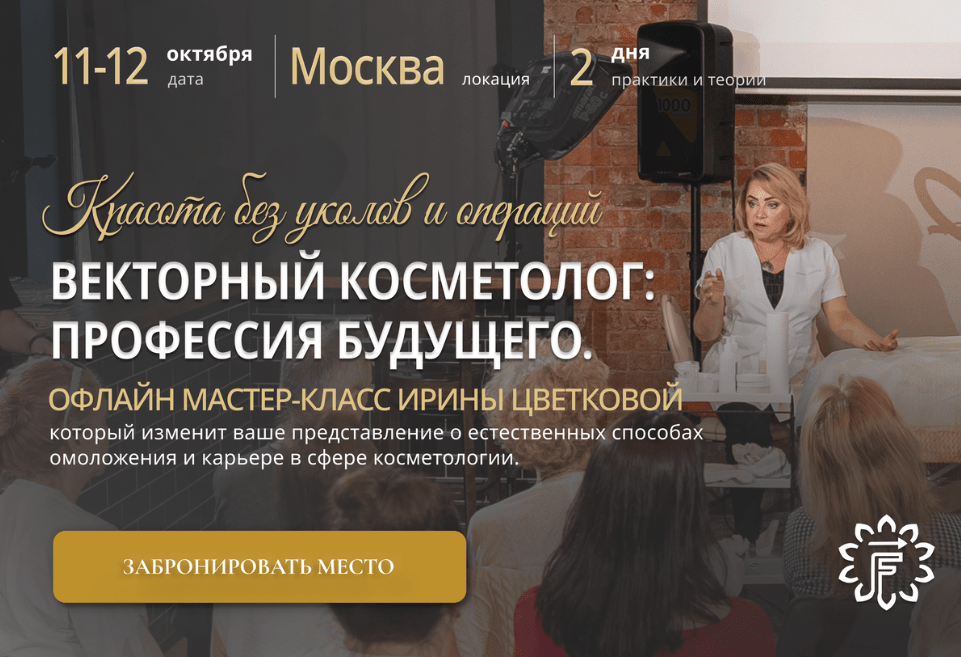 Получение допобразования в школе "Векторной косметологии Ирины Цветковой" — это отличная возможность повысить свою квалификацию косметолога/массажиста и чек на 20-25%.