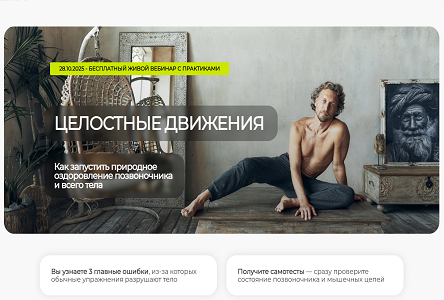 Курс обучает тому, как освоить природные исцеляющие движения для снятия зажимов и болей в спине и восстановления природного здоровья позвоночника и всего тела. Не требует особой подготовки и занимает всего 20-25 минут в день.